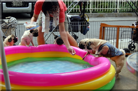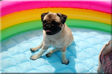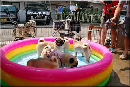 暑いけど、パグズはプールでクールダウンしながら太陽浴びて気持ちよさそうだったよ。