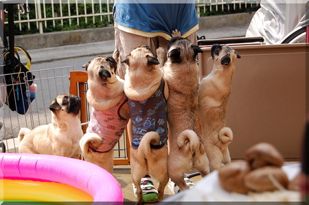 太陽の下でのびのび遊んで、パグズもそろそろ疲れてきたかな?