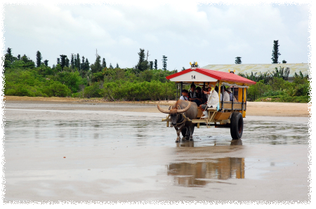 街中をめぐる竹富とは違って、海を渡す水牛さん。